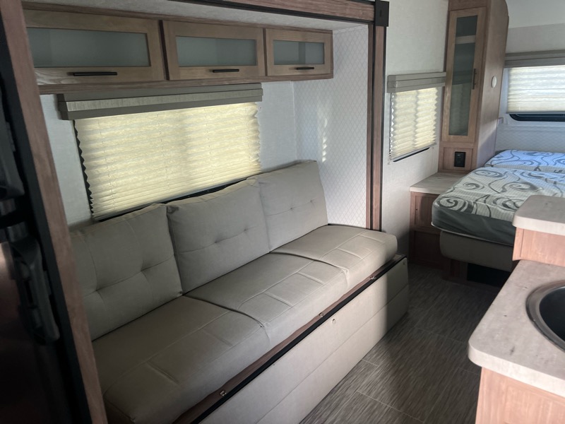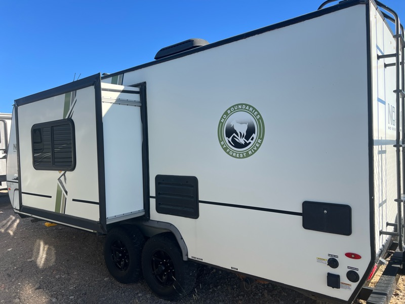 2020 Forest River No Boundries NOBO model 19.6 1 slide out light weight 1\2 ton towable approx weight empty 4284lbs 24ft total length. A/c, furnace, stove top, fridge/freezer, water heater, electric awning, electric hitch jack, murphy queen size bed that also turns in to sofa, jacknife sofa, rear restroom with shower. Very nice light weight trailer easy to pull tandem axle. $18500