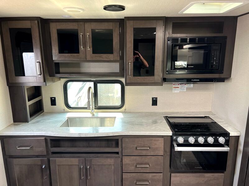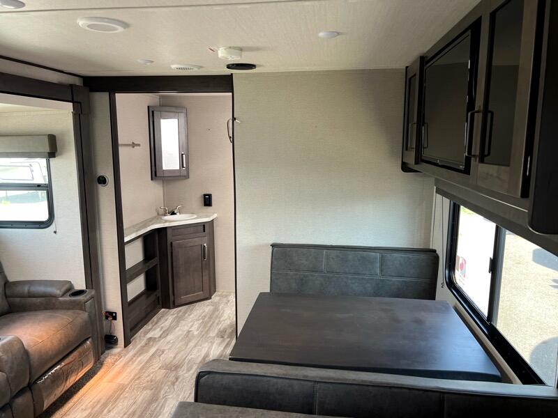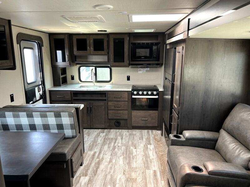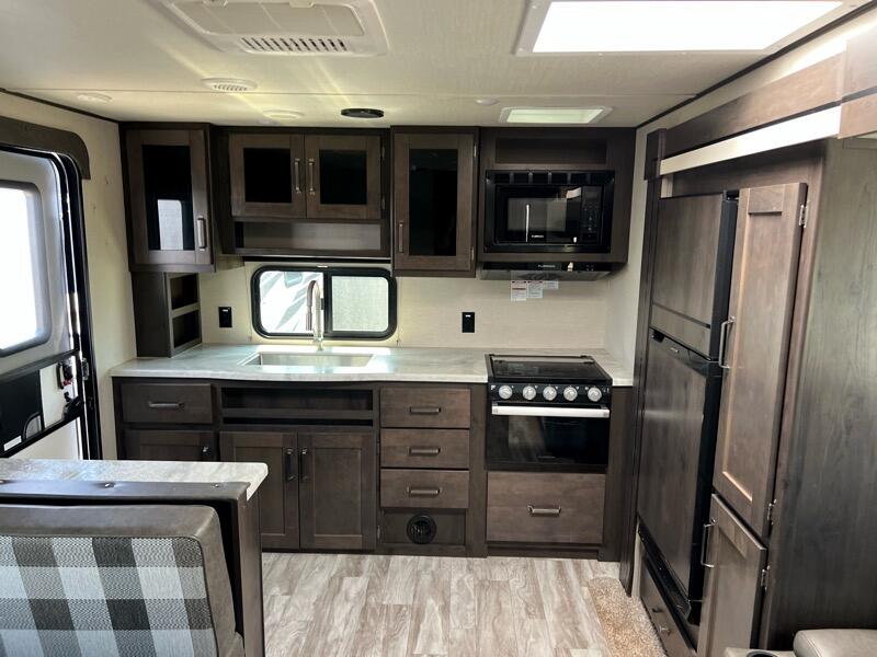 2022 Grand Design Transcend model 231RK 1 slide rear kitchen floor plan. approx 6100lbs empty weight 29ft total length. A/c, furnace, stove top with oven, microwave, fridge/freezer, gas/electric water heater, fireplace, electric awning, electric hitch jack, queen bed in front, dinette makes into bed, theater seating sofa, Tv, large restroom area with shower. Very nice travel trailer $19900