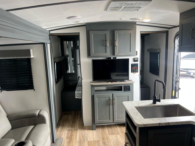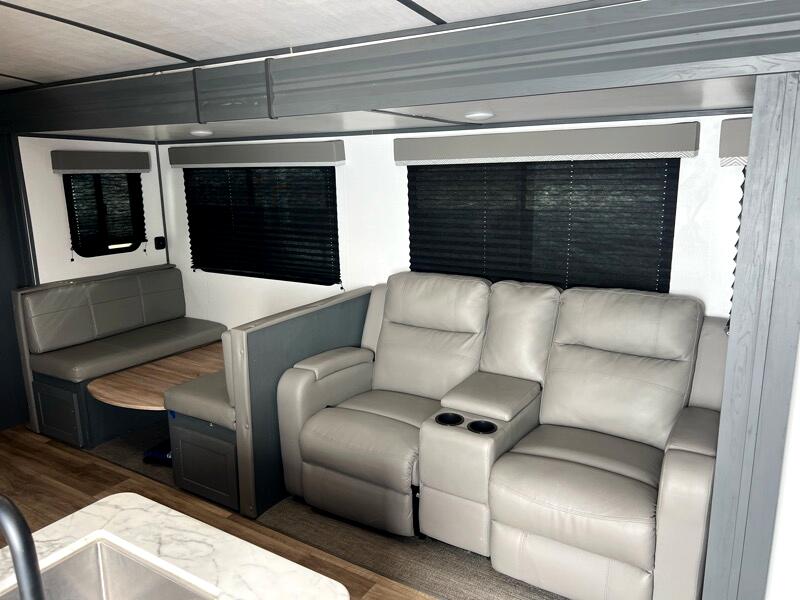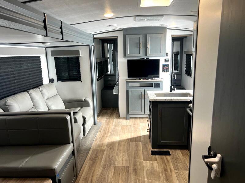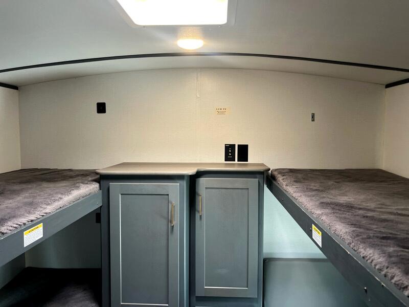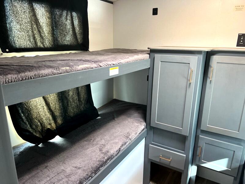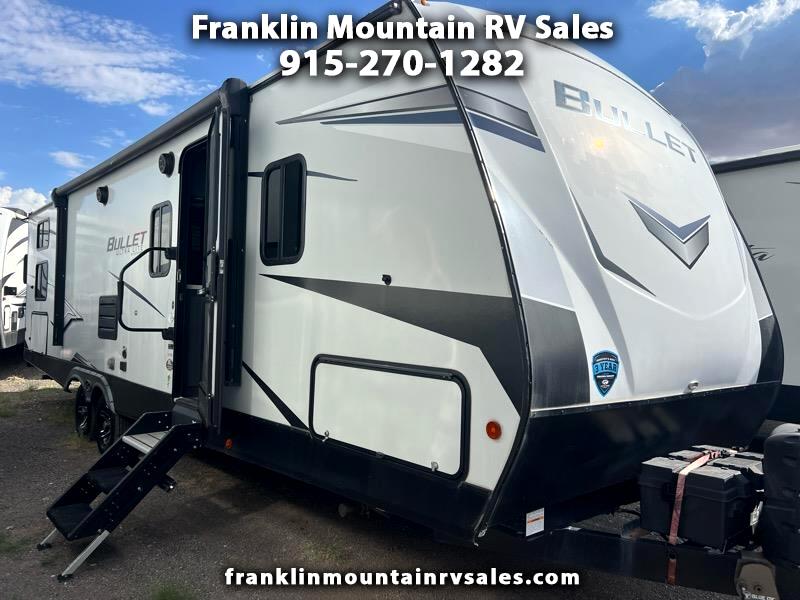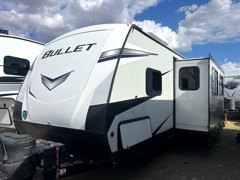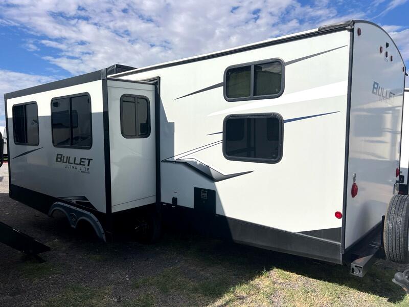 2022 Keystone Bullet model 287QBSS 1 slide Bunkhouse lightweight 6000lbs empty 34ft total length. A/c, furnace, stove top with oven, microwave, fridge freezer, gas/electric water heater, electric awning, electric hitch jack, sofa and dinette make into beds, rear bunk room, queen bed in front, restroom with shower, outside kitchen area. Very nice light weight bunkhouse $25900