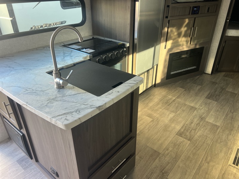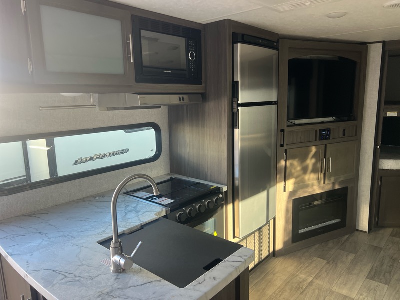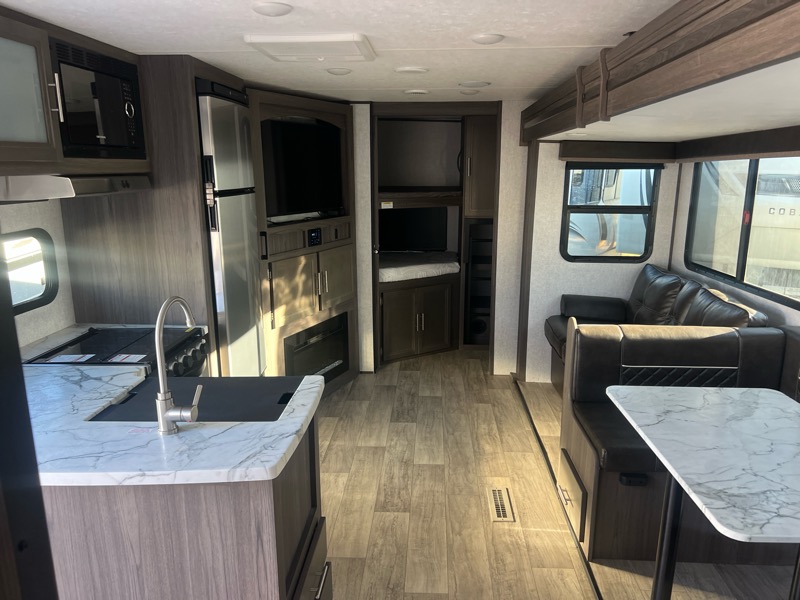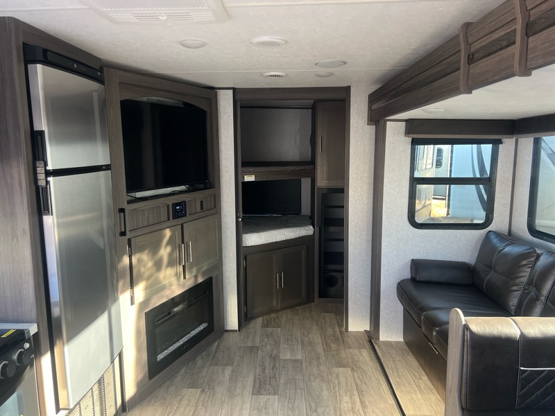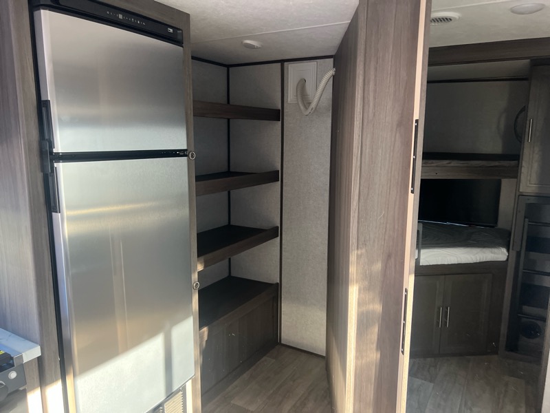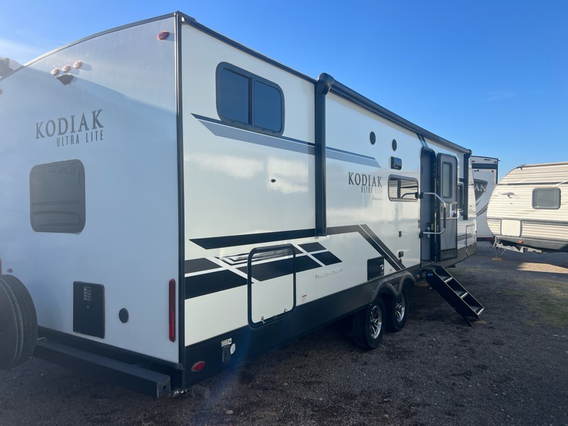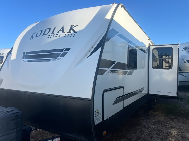 2021 Kodiak 296BHSL 1 slide empty weight 6000lbs 34ft total length. A/C, furnace, stove top with oven, microwave, gas/electric water heater, fridge/freezer, queen bed in front, sofa and dinette make into beds, 2 full bunks in rear, restroom with shower, kitchen pantry. $20900