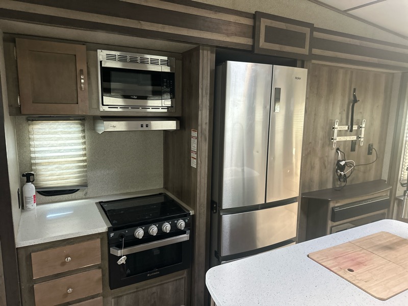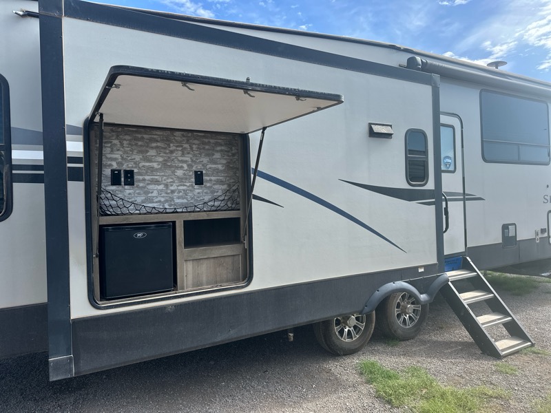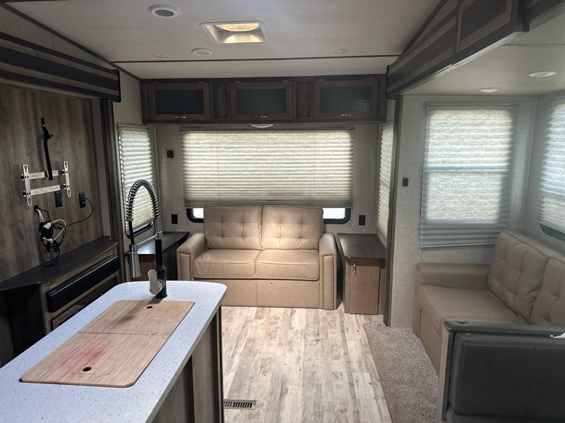 2019 Keystone Sprinter model 3571FWLFT 4 slideouts approx weight empty 11500lbs 39.5ft total length. 2 A/c's, furnace, electric fireplace, large residential fridge, gas/electric water heater, microwave, lippert self leveling system, electric awning, king bed, in bedroom, loft area, bunk room with sofa, 2 jacknife sofa's in living area, large restroom with shower. Nice 5th wheel with alot of room! $29900